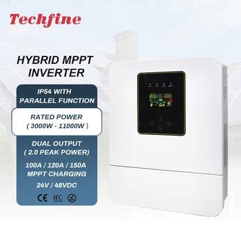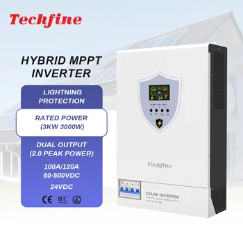 Techfine 3KW 3000W 48V 24v DC 220/230V Dual AC Pure Sine Wave Solar Inverter 100A MPPT On/Off Grid Solar Hybrid Inverter